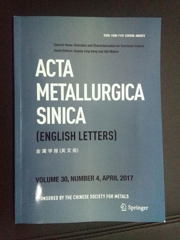 宋光铃教授为Acta Metallurgica Sinica (English Letters) 杂志主编的腐蚀特刊正式出刊。(2017-04-27)
